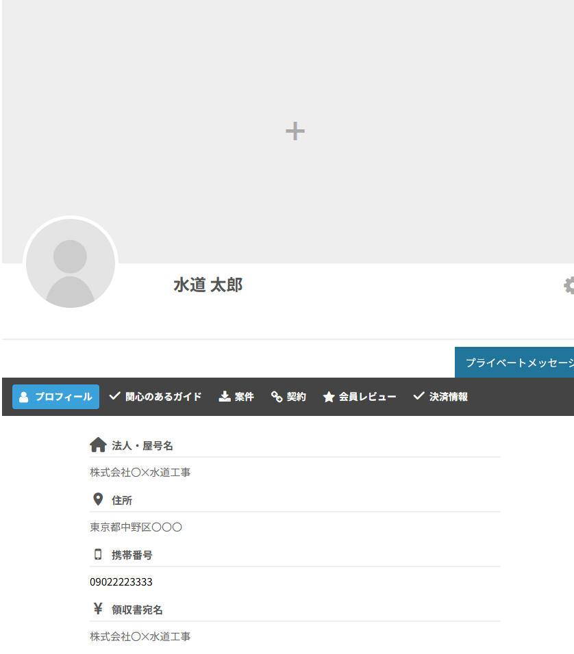検索した会員一覧から会員の写真や名前をクリックすると、その会員の詳細のページが開きます。